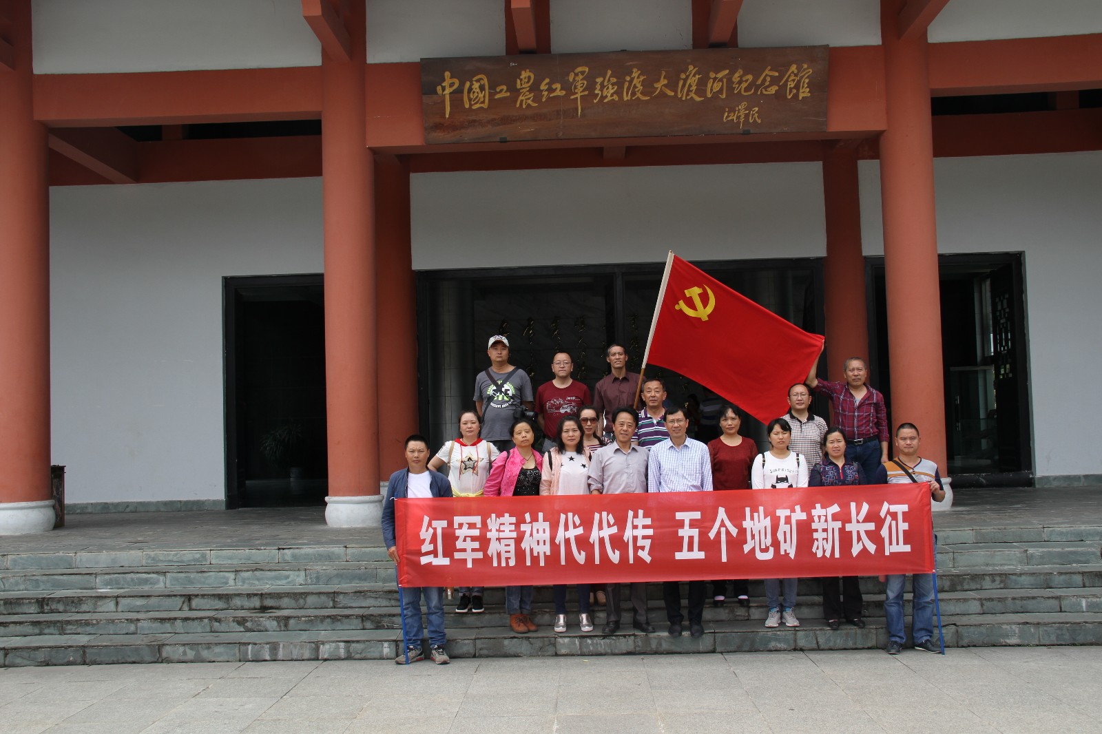 在紅軍強(qiáng)渡大渡河紀(jì)念館前合影