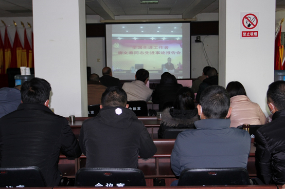 為進(jìn)一步激勵士氣,鼓足干勁,提振干部隊(duì)伍精氣神,12月24日下午,102廠黨委組織全體領(lǐng)導(dǎo)班子成員、全體中層干部赴攀西地質(zhì)隊(duì)會議室收看唐文春同志先進(jìn)事跡視頻報(bào)告會。