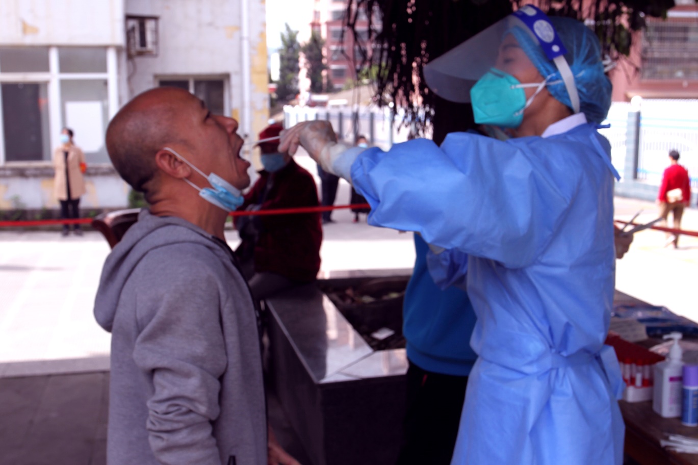 在靜態(tài)管理期間,志愿者服務隊員還對全廠513戶住戶開展了逐幢逐戶的“敲門行動”,督促每一戶、每一人及時下樓參與檢測,確保做到應檢盡檢、不漏一人。為了保障所有人員按要求參檢,隊員們可謂是費盡口舌,不惜一遍遍講解、示范,甚至在受到個別參檢人員誤會的情況下,也極盡忍讓,以保障檢測工作順利開展。