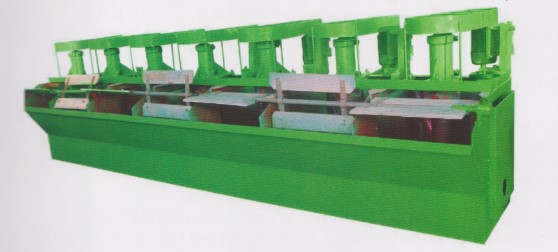 它由兩個或多個浮選槽構(gòu)成一個機組,第一槽為吸入槽,其余槽為直流槽。葉輪安裝在主軸下端,主軸上端有皮帶輪,用電動機帶動旋轉(zhuǎn)。